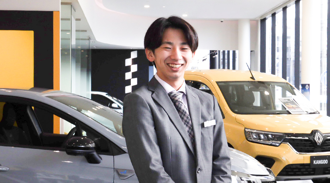 転職活動をしようと決めた時にクルマ好きの父親から「ディーラーは?」という意見を聞き、このタイミングでルノー名古屋緑の求人を見つけて応募しました。もちろん、クルマ好きの父をはじめ家族みんな賛成してくれました。
