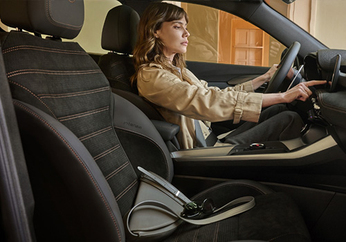 上質感に満ちたアルカンターラのシートを採用。ヘッドレストに刻まれたAlfa Romeo ロゴと、シートを彩るタンカラーのステッチが、スタイリッシュなドライブを演出します。
